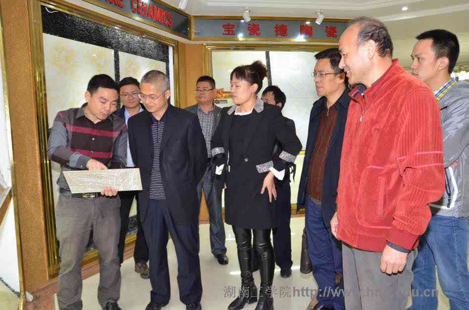 张平一行实地考察了校友企业茶陵县华盛建筑陶瓷有限公司的销售中心、生产车间及企业文化室,了解公司研发、生产、营销、员工培训等情况,并举行校企合作洽谈会。