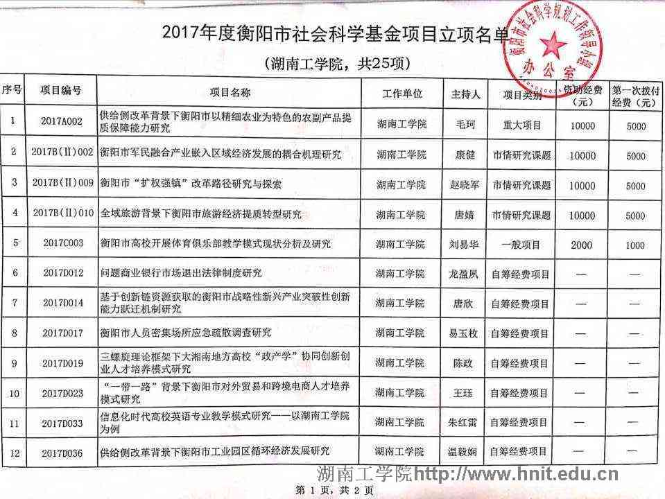 2017年度衡阳市社会科学基金项目-金冠网址线路检测中心