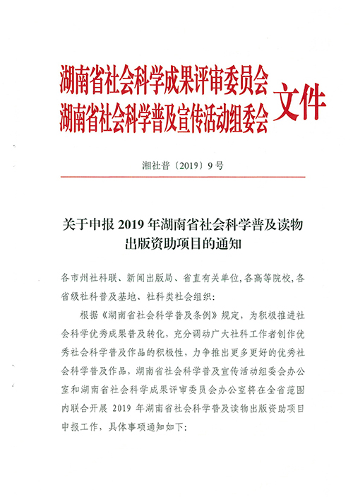 转发:关于申报2019年湖南省社会科学普及读物出版资助项目的通知-金冠网址线路检测中心